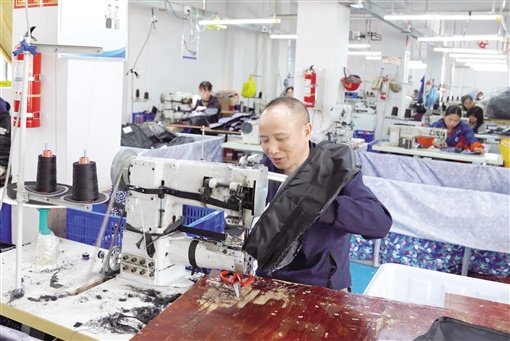 在龙升社区的森佳箱包有限公司,搬迁户曾令刚正在做箱包的包边程序,忙得不亦乐乎。曾令刚说,前些年,他在广东的一家箱包厂打工,没想到住上新房后,楼下也有了箱包厂,上班顾家两不误。