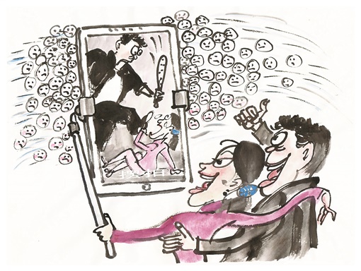 家暴是一个很严肃的话题,绝不该被如此轻佻地摆拍。对这种哗众取宠博流量的无底线做法,必须依法依规严肃处理,以儆效尤。 画/王成喜 文/法益