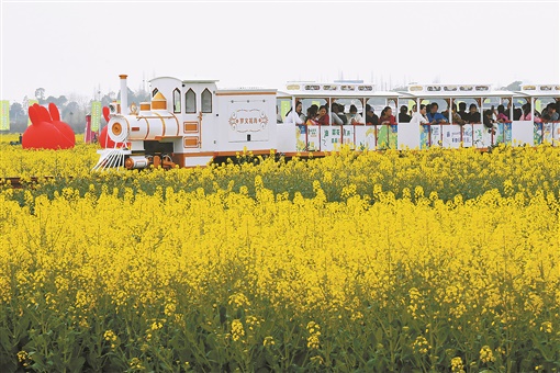 3月9日,南县乌嘴乡罗文村油菜花海,游客在休闲游玩。当天,2023湖南油菜花节在该村启动。