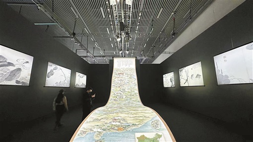 第三个方面,各个板块的联结精准而专业。这个展览借鉴了电子游戏的玩法,也包含戏剧的一些概念。让观众在展厅里一次次地重复,真诚地重复,每一次重复都会给观众带来认识维度的延展。一楼数字展览结合实体呈现作品与周边的关系,激发观众再进一步探究的热情,观众就可以去二层,去看玻璃展柜里的原作。观众认识有了从感性到理性的升华,又有从理性到感性的拓展。在原作陈列区,我们也布置了很多电视屏幕,讲解齐白石的虾、蟹、鱼等典型艺术形象的形成过程,与数字展览板块遥相呼应。总的来讲一层楼看热闹,二层楼看门道。