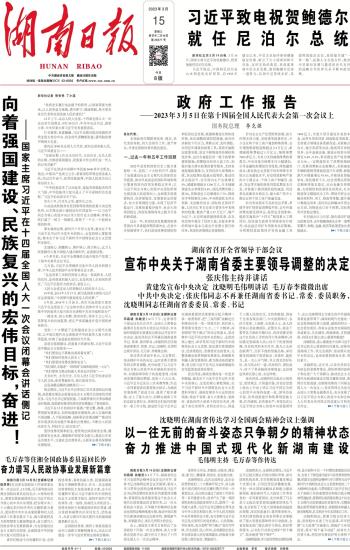沈晓明强调,学习宣传贯彻全国两会精神,是当前和今后一个时期的重要政治任务。全省上下要迅速兴起学习宣传贯彻的热潮,把落实全国两会精神与学习贯彻习近平新时代中国特色社会主义思想和党的二十大精神结合起来,与贯彻落实习近平总书记关于湖南工作的重要讲话和指示批示精神贯通起来,紧紧抓住高质量发展这个社会主义现代化国家建设的首要任务,完整准确全面贯彻新发展理念,积极服务和融入新发展格局,扎实抓好今年各项重点工作。