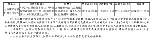 根据宁波皓冉投资合伙企业(有限合伙)(以下简称“宁波皓冉”)与长沙湘江资产管理有限公司(以下简称“湘江资管”)达成的债权转让合同,宁波皓冉将其合法受让的基于广发银行股份有限公司与上海博天信息科技有限公司签订借款合同编号为(沪)2012银额贷字第127号《额度贷款合同》和(沪)2013银额贷字第0413号《额度贷款合同》项下债权于 2022年12月30日依法转让给了湘江资管。宁波皓冉特公告通知上海博天信息科技有限公司及其担保人上海金日长江化工有限公司、陈长江、潘子系、徐红宝、张嗣刚、潘逊梅,湘江资管依法享有上海博天信息科技有限公司基于前述借款合同所欠的不良贷款本金及相应利息和其他相关协议项下的全部权利。