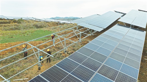 3月24日,施工人员在东安县井头圩镇60兆瓦集中式光伏项目地安装光伏板。该项目是省“十四五”第一批集中式光伏发电项目。近年,东安县因地制宜大力发展光伏产业项目,让更多农民群众享受到“阳光红利”。