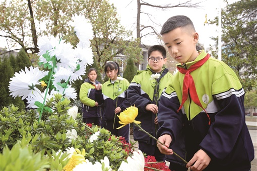3月28日,溆浦县警予学校学生为向警予同志纪念碑敬献鲜花。清明时节,该县教育系统把“文明祭祀树新风,尊崇英雄担使命”作为思政教育课程主题,广泛开展活动,让学生化追思为责任,化崇敬为使命,从小坚定听党话、跟党走的决心。