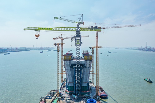作为全球首台万吨米级上回转塔机,中联重科W12000-450塔机常年助力常泰长江大桥建设。其最大起重重量达到450吨,最大起升高度400米,相当于可以一次起吊300辆小轿车至130层楼的高度。