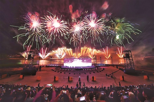 4月1日晚,由浏阳花火剧团打造的全球首个多媒体艺术烟花剧《火神》在浏阳天空剧院精彩上演。该剧集焰火、交互屏幕、沉浸剧情、多媒体联动于一体,为观众带来震撼的视听效果。湖南日报全媒体记者 傅聪 王文 摄影报道