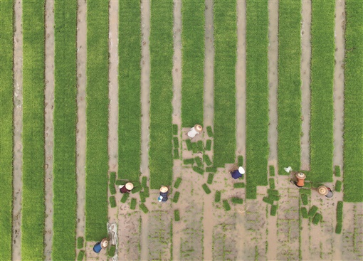 4月11日,祁东县金桥镇,村民在起秧盘。仲春时节,该县农民抢抓农时开展早稻春插工作,确保早稻生产面积落实。曹正平 龙精华 摄影报道