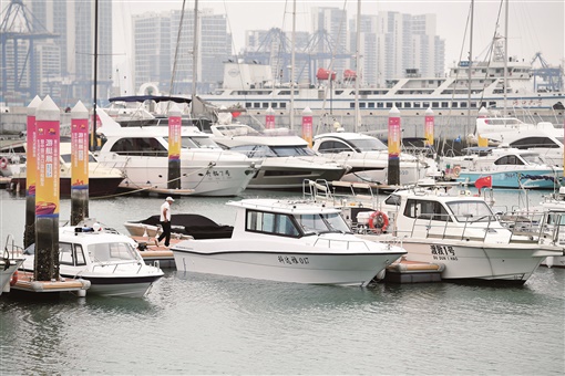 4月12日,为期4天的第三届中国国际消费品博览会游艇展暨中国(海口)国际船艇及生活方式展在海南省海口市开展。本届展会以“游艇生活,相约海口”为主题,通过“展+会+赛”模式,着力打造集名品展示、商贸对接、交易合作、行业交流、文化体验等功能于一体的知名游艇展会品牌。展会现场云集了225艘国内外知名品牌船艇,还将举行一系列的水上生活体验和展会活动。 湖南日报全媒体记者 田超 彭可心 摄影报道