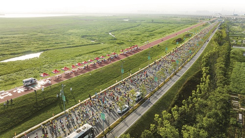 4月16日,2023岳阳马拉松比赛盛大举行,来自全国各地的万余名跑友,在“最美长江岸线”上驰骋竞速,共同见证君山生态文明建设成果。升级版的岳阳马拉松,带动当地前后3天出现了一房难求、一餐难订的现状。