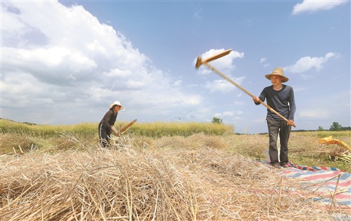 5月4日,衡东县杨林镇,村民在采收油菜籽。 暮春时节,该县的油菜陆续进入成熟采收季。曹正平 单亮 摄影报道