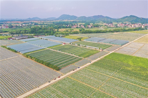 5月5日,道县正禾农场蔬菜基地,蔬菜大棚成行成排,水肥一体化菜地阡陌纵横,路网交织相通。近年来,该县各蔬菜基地完成高标准农田建设,大力发展外向型生态绿色蔬菜产业,成功创建粤港澳大湾区“菜篮子”配送中心,促进农民增收,助力乡村振兴。何红福 摄