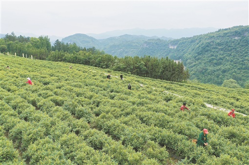 5月8日,张家界市武陵源区金杜村莓茶种植基地,茶农在采摘鲜叶。立夏过后,该区高山莓茶进入产销旺季,茶农抓抢当前气候适宜的时机采摘莓茶鲜叶,加工供应市场。近年来,当地依托丰富的旅游资源和优良的生态环境,大力推广种植高山生态莓茶,带动农民致富增收。 吴勇兵 摄
