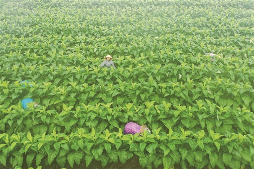 5月11日,常宁市三角塘镇长江村,农民在冒雨管护作物,确保丰收增产。