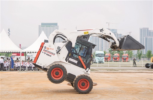 挖掘机360度旋转底盘、整机漂移;装载机前轮着地、后轮悬空,伴随动感音乐“翩翩起舞”……随着机手“加码”操作难度,现场的尖叫声和掌声一浪高过一浪。