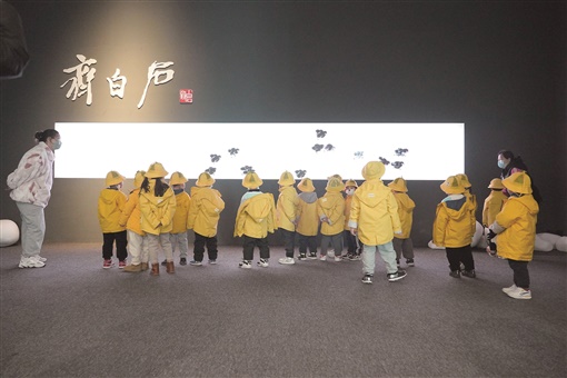 齐白石精品展的一个鲜明特点是,设立700多平方米的公教体验区,引导大众身临其境地感受齐白石视角下的家山与远游、草木与鸣虫。
