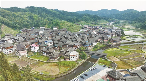 5月17日,通道侗族自治县坪坦乡高步村传统村落群,群山环绕着村庄,侗族特色建筑鳞次栉比,构成一幅生态秀美的清新画卷。李尚引 李儒涛 摄影报道