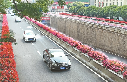 5月19日,长沙市芙蓉区韶山北路两旁花箱花团锦簇,驾车穿梭其中仿佛行驶在一条梦幻的“空中花廊”。初夏时节,长沙城市道路绚丽多彩,一路芬芳的花朵既扮靓了城市环境,也提升了绿化品质。 湖南日报全媒体记者 李健 摄