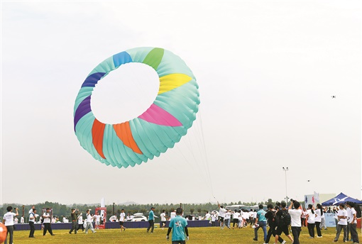 5月19日,长沙县松雅湖国家湿地公园,市民合力放飞“滚地龙”风筝。当天,2023年“中国旅游日”长沙县分会场暨“星沙有你”风筝放飞空中盛宴活动举行,各式各样的风筝惊艳亮相。湖南日报全媒体记者 田超 周小雷 摄影报道