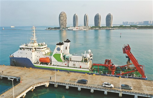 5月21日,国家文物局、海南省人民政府等单位在海南三亚发布我国深海考古工作近期取得的重大进展。2022年10月,在我国南海西北陆坡约1500米深度海域发现两处古代沉船。沉船水下永久测绘基点已于2023年5月20日布放,并进行初步搜索调查和影像记录,开启了中国深海考古新篇章。图为5月21日,完成南海西北陆坡一号沉船第一次考古调查的“探索一号”科考船携“深海勇士”号载人潜水器抵达三亚(无人机照片)。新华社 发