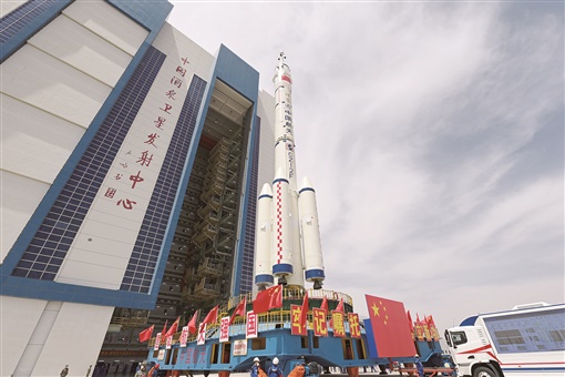 5月22日,神舟十六号载人飞船与长征二号F遥十六运载火箭组合体在转运途中。记者从中国载人航天工程办公室了解到,当天,神舟十六号载人飞船与长征二号F遥十六运载火箭组合体已转运至发射区。目前,发射场设施设备状态良好,后续将开展发射前的各项功能检查、联合测试等工作,计划近日择机实施发射。新华社 发