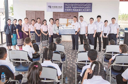 5月26日,老挝“希望之手”教育中心,中国南方电网公司联合老挝志愿者开展“希望之光”老挝公益行活动,为孩子们赠送美术用品,促进中老民心相通。