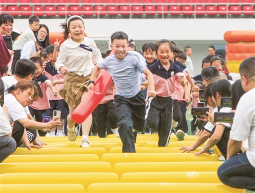 5月27日,龙山县天心育儿园邀请家长和小朋友在县体育馆参加丰富多彩的亲子游戏,在轻松快乐中迎接“六一”国际儿童节。曾祥辉 摄