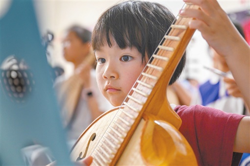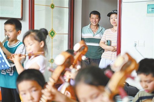 “我是第一次上台演出,以前从来没有想过,会在这么多人面前演奏乐器。我和小伙伴们都是农村孩子,如果不是李老师,我们也不知道中国有这么多民族乐器。”回忆起当时的情景,乐团成员丁洁雯仍然抑制不住兴奋之情。