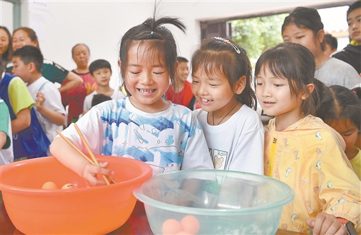 玩转二十四节气,品味六一童真。雨花区砂子塘新世界小学开展了以“玩转二十四节气”为主题的“六一”游园活动。一至六年级各班级以一个节气为主题设计闯关活动,孩子们则需成功闯关争得奖章后兑换奖品。“果实种子对对碰”“芒种斗草”“定春彩蛋”“雨水音乐会”“春菜知多少”“摸秋”“大暑运瓜”等活动充满了趣味与巧思,孩子们在参与游戏的同时,也在奔赴一场场与传统文化习俗的千年之约。