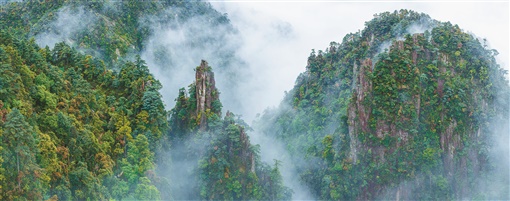 攀援愁绪的渐渐消隐,是因一条细碎作响的小溪。小溪在将军寨的林海间斗折蛇行,沿溪而入,一路相随的灼热阳光骤然服软,厚实的阴凉逼身而来。两岸峭壁高高低低,林木便不再单调一色,而是由浅入深,层次鲜明:豆绿、葱绿、碧绿、青绿、墨绿,间或杂以红、白两色。这是众多古老林木隐居的乐土,也是当年第四纪冰川浩劫的避难地,满眼是挨挤的华南五针松、南方红豆杉、白豆杉、长苞铁杉、穗花杉、南岭紫茎……都是我在山外不曾见过的珍稀之物。