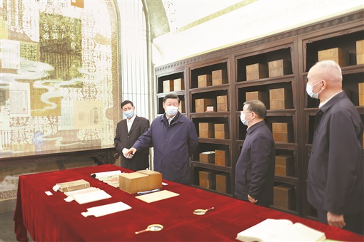 1日下午,习近平乘车来到位于北京市昌平区燕山脚下的中国国家版本馆中央总馆。中国国家版本馆主要承担国家版本资源规划协调、普查征集、典藏展示、研究交流和宣传使用职责,建有中央总馆和西安、杭州、广州分馆。习近平首先走进文华堂,听取版本馆规划建设有关情况介绍,参观国家书房、中华古代文明版本展、中国当代出版精品与特色版本展。在文瀚阁,习近平仔细察看马克思主义中国化时代化经典版本展,不时询问版本搜集整理有关情况,并登上五层露台俯瞰版本馆全貌。随后,习近平来到兰台洞库,参观“汉藏蒙满文大藏经雕版合璧”和“《四库全书》合璧”库展,详细了解馆藏精品版本保存情况。习近平强调,我十分关心中华文明历经沧桑流传下来的这些宝贵的典籍版本。建设中国国家版本馆是我非常关注、亲自批准的项目,初心宗旨是在我们这个历史阶段,把自古以来能收集到的典籍资料收集全、保护好,把世界上唯一没有中断的文明继续传承下去。盛世修文,我们这个时代,国家繁荣、社会平安稳定,有传承民族文化的意愿和能力,要把这件大事办好。我对中国国家版本馆的建成和管理是肯定的、满意的。国家版本馆的主要任务就是收藏,要以收藏为主业,加强历史典籍版本的收集,分级分类保护好。同时,要加强对收藏的研究,以便更好地做好典籍版本收藏工作。在做好主业的前提下,协助各方面做好历史典籍版本的研究和挖掘。总之,建设中国国家版本馆,是文明大国建设的基础工程,是功在当代、利在千秋的标志性文化工程。