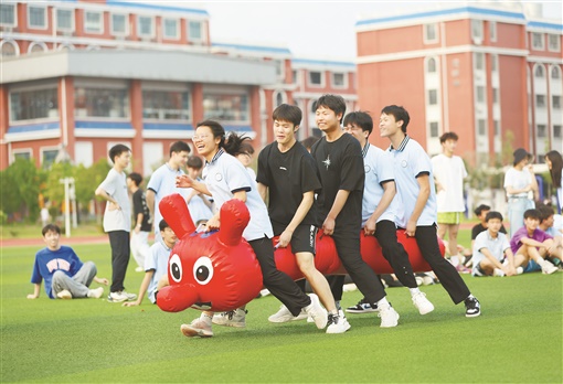 6月1日,道县道州玉潭东阳学校高三年级学生在做“同舟共济”游戏。高考临近,该县各学校纷纷给高三学生开展心理辅导,组织快乐减压游戏,帮助他们以轻松乐观的心态迎接高考。
