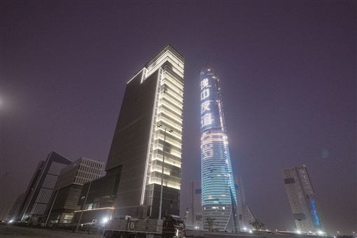 北非,尼罗河往东,太阳不知疲倦地照耀着开罗东部沙漠。在沙漠和蓝天之间,高达385.8米的“非洲第一高楼”——标志塔,傲然矗立。
