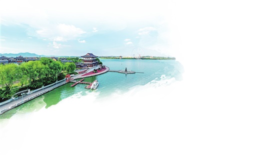 柳叶湖水泛起愉悦的波澜,河畔的金柳迎风而起,为高质量发展摇旗助威。