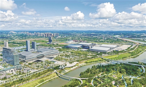 6月26日,蓝天白云下的长沙国际会展新城。近年,随着越来越多国际会展活动的引入,长沙国际会展新城作为“国际会客厅”的价值日益彰显,片区城市功能配套也实现全方位提级跃升,目前正朝着成为“中部地区国家级门户”大步迈进。