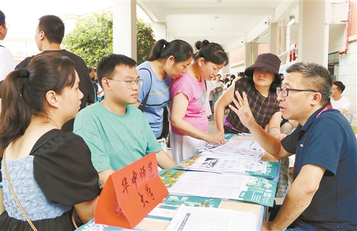6月28日,同济大学、武汉大学、湖南大学等近20所高校招生工作人员齐聚吉首市第一中学,与该校高三考生及家长面对面,零距离解答志愿填报及专业咨询。