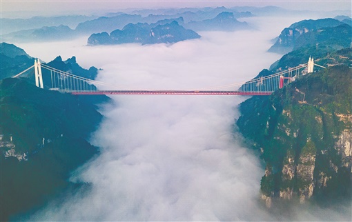 武陵山脉腹地,德夯大峡谷之上,矮寨大桥飞架云端,天堑变通途。