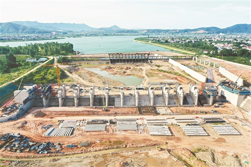 6月28日,位于临澧县与石门县交界处的澧水航道建设工程青山枢纽工地,建设者们在加紧施工。青山枢纽是一个以提水灌溉为主,兼顾航运、发电等综合利用的水利工程,船闸按2000吨级设计。目前,船闸及泄水闸主体混凝土浇筑已完成总任务的82%以上。柏依朴 沈为东 摄影报道
