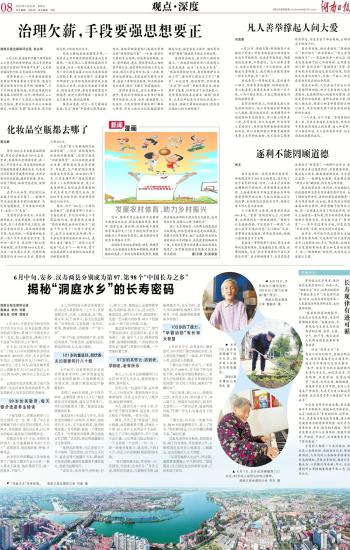 “随着环保意识的提升,无论是山区还是湖区,生态环境都越来越好。”张键分析,长寿现象与自然生态环境有密切关联,水源、土壤、空气、物产等,都是造就人民群众健康长寿的重要因素。