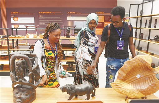 6月29日,非洲客商代表在长沙高桥大市场中非经贸合作促进创新示范园参观。