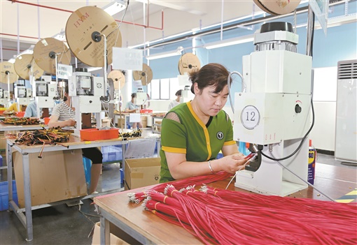6月29日,洞口县工业园区慧创电子有限公司,员工在生产电子产品。今年来,该县工业园区企业在当地稳岗用工、金融支持等系列措施的帮扶下,呈现产销两旺好势头。 滕治中 摄
