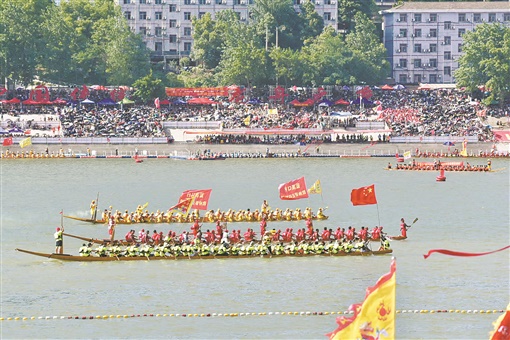 俗话说,酒喝头盏,茶品二道,龙船三盘定输赢。预赛,复赛,决赛,一只只龙船激流横渡、搏击浪花、奋勇争先,带着酒气的豪迈、热血的澎湃、浪涛的喧啸、震耳欲聋的呐喊。两岸数十万观众忘乎所以地攥拳跺脚,铺天盖地叫嚷助威,“三千载浪里争雄,九万年不老乡情,败亦赢,胜亦赢,帅旗满江横”。这远比当今的世界杯足球赛更为朴野、狂热、血性、欢腾。