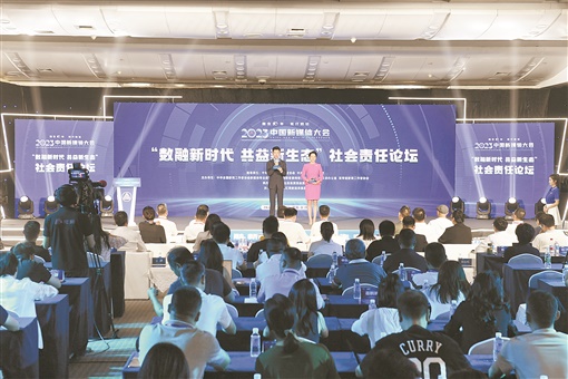 7月12日,2023中国新媒体大会“数融新时代 共益新生态”社会责任论坛在长沙举行。图为论坛会现场。湖南日报全媒体记者 徐行 摄