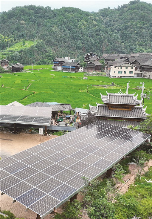 7月17日,通道侗族自治县坪坦乡横岭侗寨,“光伏车棚”发电项目组件安装即将完工。近年来,该县抢抓新能源产业发展机遇,打造集“高山风电、光伏发电、小水电、储能电”于一体的绿色能源产业集群,助推县域经济高质量发展。 李尚引 摄