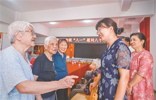7月27日,湖南省妇联与省妇女儿童发展基金会代表来到长沙市望城区安华山庄养老公寓,向在此养老的10位“八千湘女”代表致以“八一”节日慰问。2016年以来,先后有19位“八千湘女”代表在此安享晚年,她们都年近九旬,大多于1951年参军入伍,奔赴新疆,将青春献给了部队、献给了边疆。