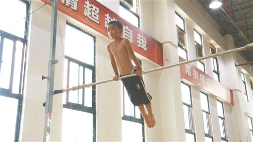 “他特别能吃苦!”这是湘潭体操队教练刘博威对蒋鸿晖的评价。