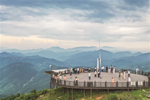 7月29日,蓝山县云冰山景区,游客在高处游玩。盛夏时节,平均海拔1200米的该景区,风景秀丽,凉爽宜人,成为众多湘粤游客避暑纳凉的好去处。