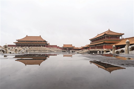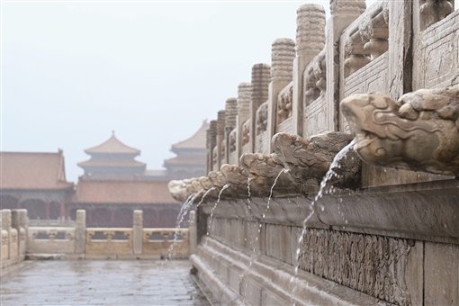 连日来,北京迎来强降雨天气,故宫再现“九龙吐水”。依靠精妙的排水系统,宏大的故宫建筑群在暴雨中安然无恙。紫禁城的雨水排水系统始建于明代,故宫的地面顺应北京地理环境特点,整体走势呈北高南低、中间高两边低,而且略有坡度,这一坡度有利于自然排水。故宫保留至今的古代雨水沟长度超过15公里,其中暗沟长度将近13公里。大图为7月31日拍摄的雨中故宫;小图为故宫太和殿台基的螭首吐出雨水。新华社 发