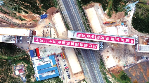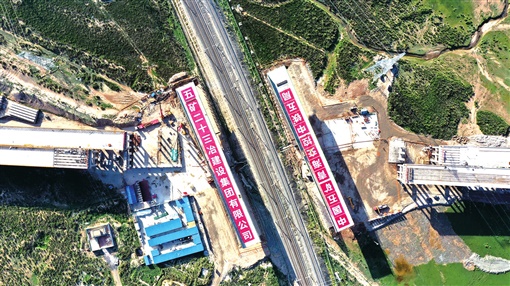察汗诺互通转体桥顺利完成转体,胡建军宣布察汗诺互通转体桥转体成功。