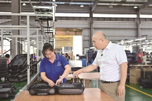 7月29日,记者来到位于会同产业开发区的湖南享同实业有限公司,生产车间,一片繁忙,700余名工人正在赶制海外客户订购的拉杆箱。