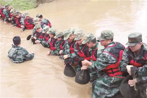 “子弟兵来了!”北京卫戍区某部官兵连续奋战防汛抢险一线,成立“党员突击队”,党员干部冲在最前沿,迷彩绿和鲜红的旗帜,让当地群众倍感亲切。
